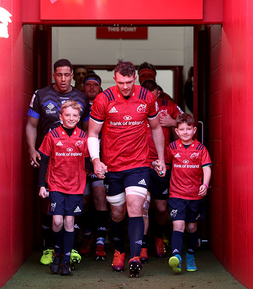 Munster’s Peter O’Mahony with mascots Jack Adams and Rob Kearney