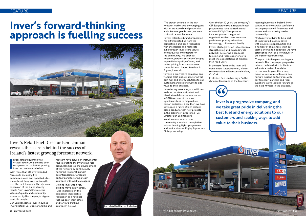 “With over 90 Inver branded service stations including a number of company owned and operated forecourts, the dynamic expansion of Inver Retail brand results directly from Inver’s lifetime values of quality and community, supported by their biggest asset, its people.” stated Inver’s Retail Director BEN LENIHAN