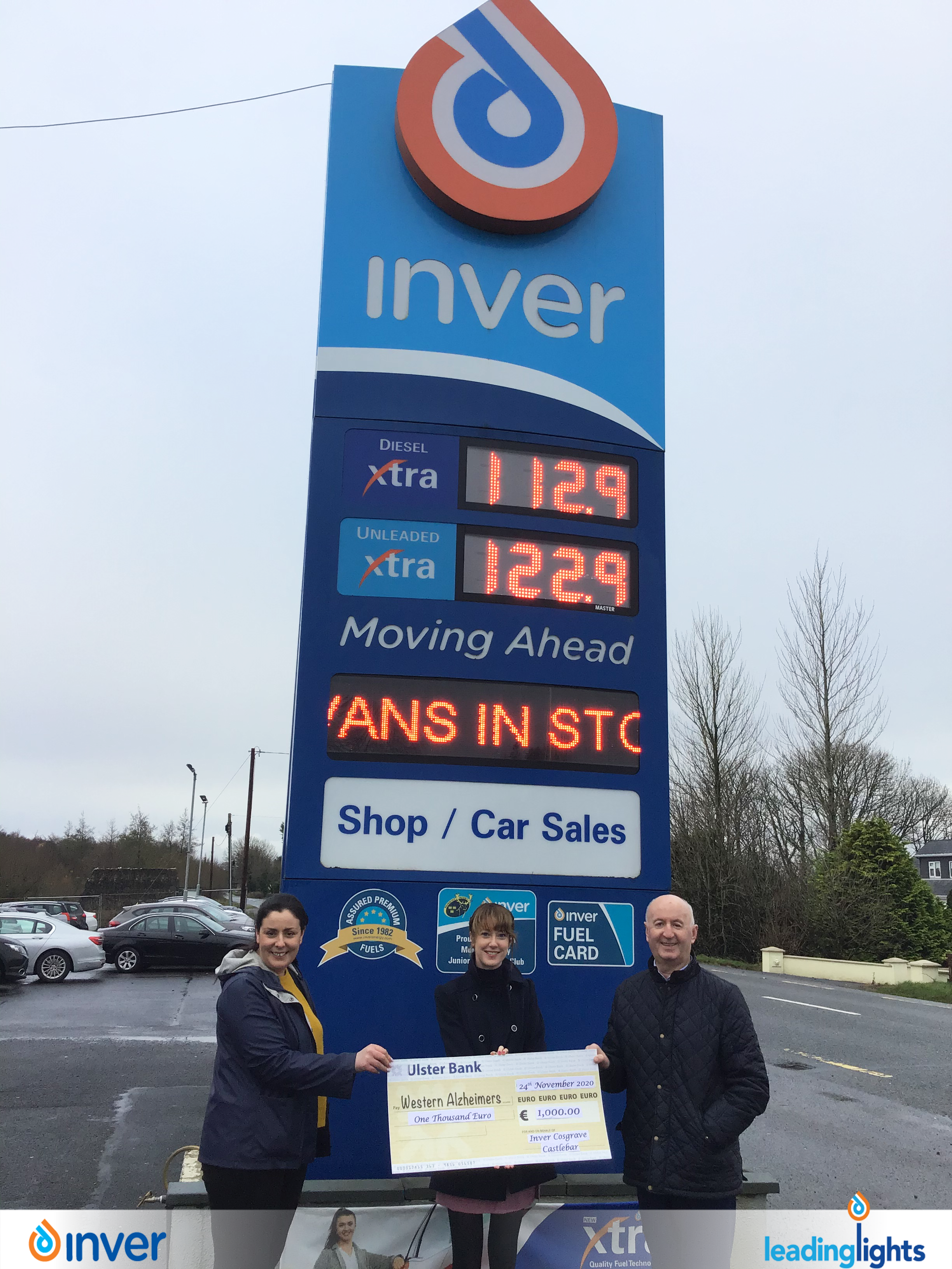 Western Alzheimers Charity Recieve €1,000 from Inver Cosgraves Co. Mayo as Part of Inver’s Leading Lights Initiative.